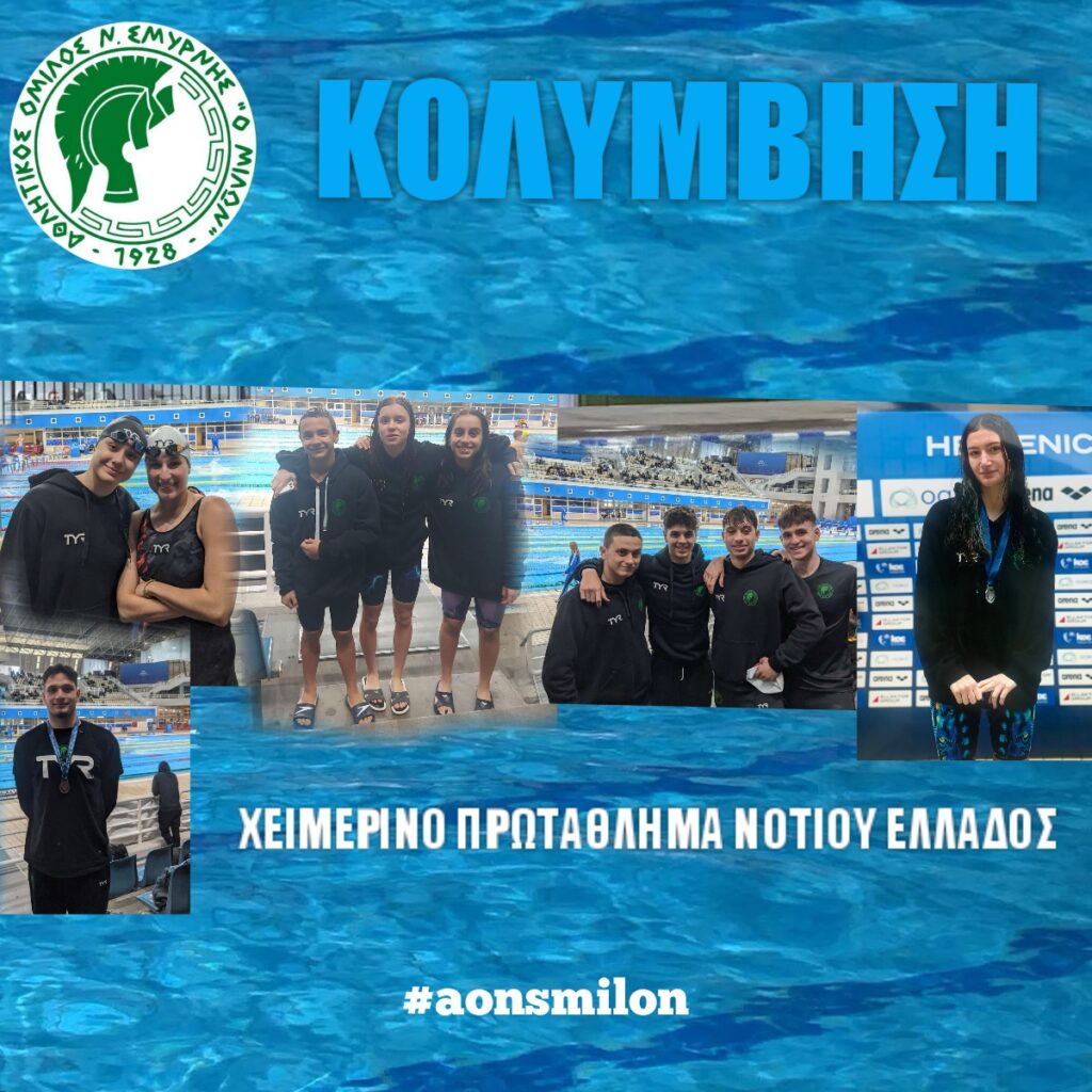 Φτάσαμε αισίως στα μέσα της αγωνιστικής χρονιάς . Έφτασε λοιπόν ο ΜΙΛΩΝΑΣ στο πιο σημαντικό αγωνιστικό γεγονός της χειμερινής περιόδου για την κολύμβηση σε επίπεδο κατηγοριών το Χειμερινό Πρωτάθλημα Νοτίου Ελλάδος .Ο Μίλωνας παρουσίασε μια από τις μεγαλύτερες αριθμητικά ομάδες των τελευταίων ετών (45 αθλητές ) και κατάφερε τη συγκομιδή 9 Μεταλλίων (2 χρυσά, 6 ασημένια και 1 χάλκινο ) καθώς και 56 εισόδους στις βαθμολογούμενες 8αδες και 16αδες σε ατομικά και ομαδικά αγωνίσματα καταφέρνοντας την άνοδο του τμήματος σε πολύ υψηλές θέσεις στον πίνακα της βαθμολογίας . Στην κατηγορία των Εφήβων – Νεανίδων καταλάβαμε την 5η θέση μαζί με όλα τα μεγάλα ονόματα στο χώρο της κολύμβησης , και στους Παίδες – Κορασίδες και πάλι ανάμεσα σε 60 βαθμολογημένα σωματεία βρεθήκαμε στην 12η θέση .