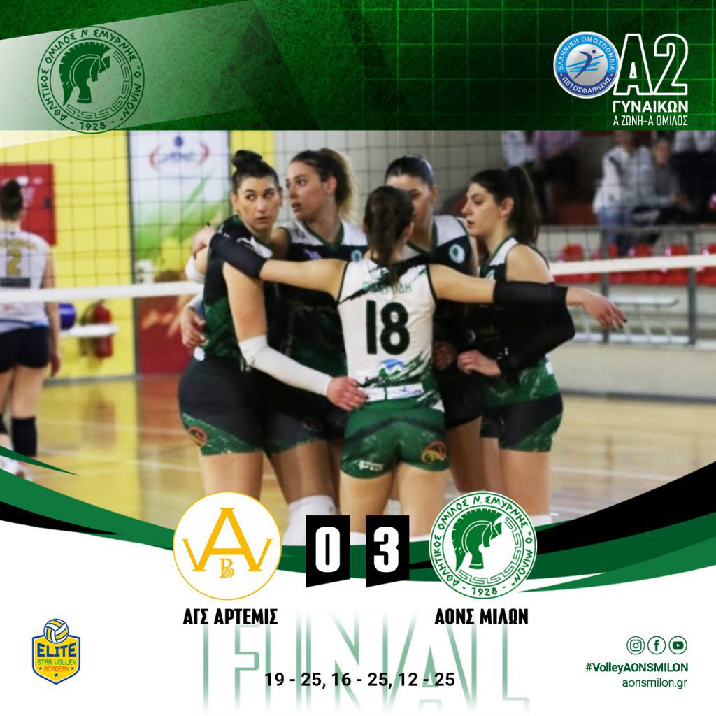 ΜΙΑ ΑΚΟΜΗ ΣΗΜΑΝΤΙΚΗ ΝΙΚΗ ΓΙΑ ΤΗΝ ΠΡΩΤΟΠΟΡΟ ΓΥΝΑΙΚΕΙΑ ΟΜΑΔΑ ΒΟΛΕΙ ΤΟΥ ΜΙΛΩΝΑ ΑΡΤΕΜΙΣ ΚΟΡΥΔΑΛΛΟΎ – ΑΟΝΣ ΜΙΛΩΝ: 0-3 ΠΡΩΤΑΘΛΗΜΑ Α2 VOLLEY ΓΥΝΑΙΚΩΝ