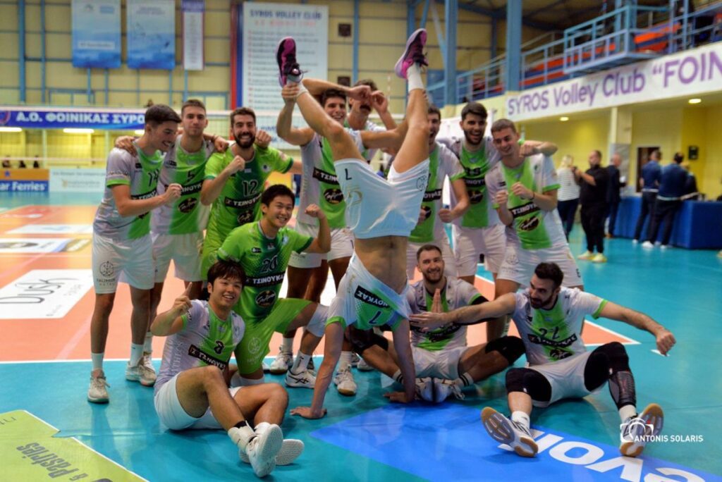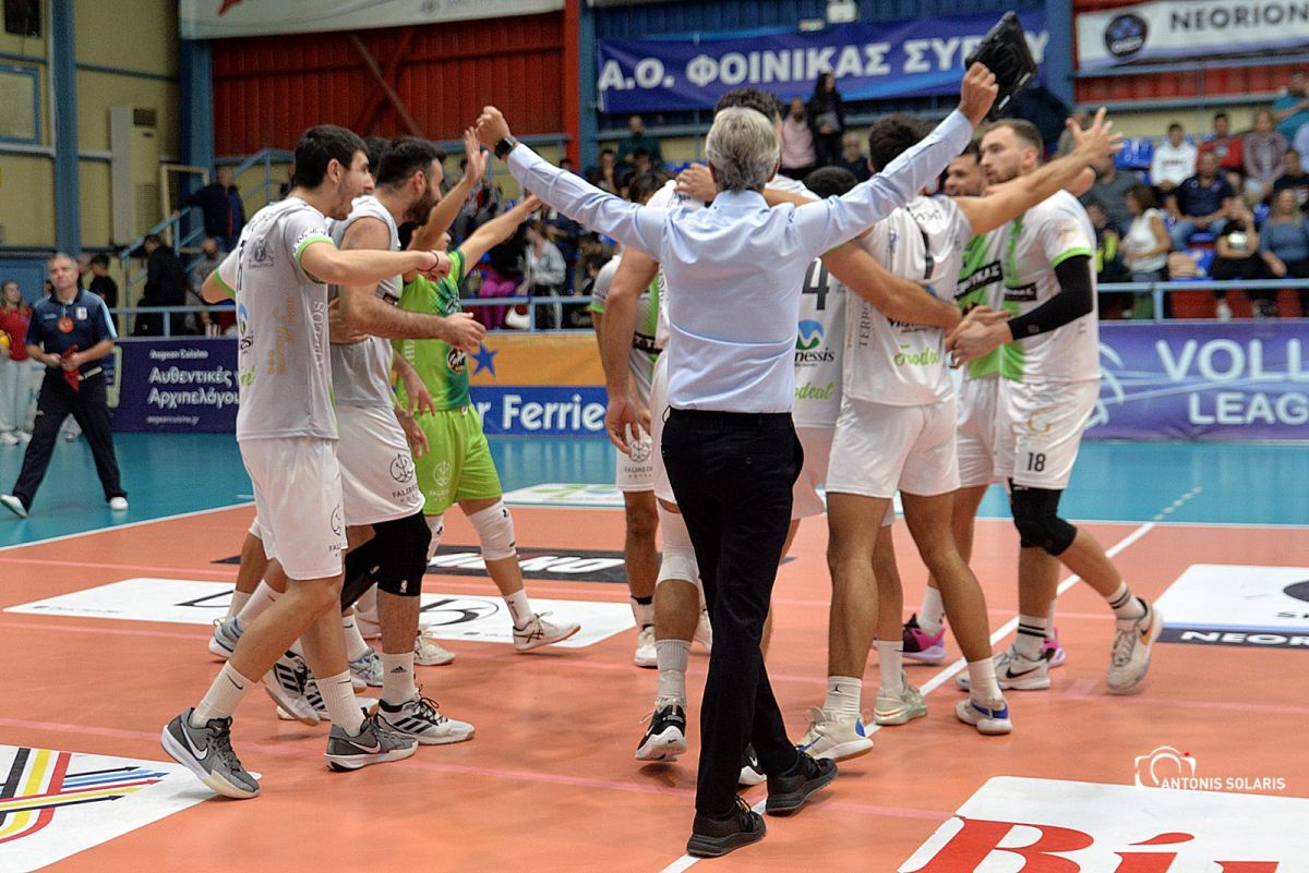 Οι βολεϊκές… τρέλες του Μίλωνα μας είχαν λείψει τη θερινή περίοδο αλλά ο Σάκης Ψάρρας και οι παίκτες του είναι εδώ για να βάλουν στο κλίμα μιας ακόμα συναρπαστικές σεζόν. Παρότι βρέθηκαν να χάνουν 2-0 από το μαχητικό Φοίνικα στη Σύρο κι αφού απώλεσαν το 1ο σετ από 20-23 κατάφεραν με αντεπίθεση διαρκείας και μεγάλα αποθέματα δυνάμεων να φέρουν τα πάνω κάτω και να νικήσουν με 3-2 σετ. Ιστορική θα μείνει και η πανηγυρική φωτογραφία με τον Φροίξο Κωτσάκη να πανηγυρίζει… ανάποδα δείχνοντας πως ο Μίλων των ανατροπών είναι εδώ!