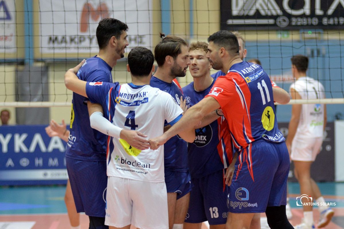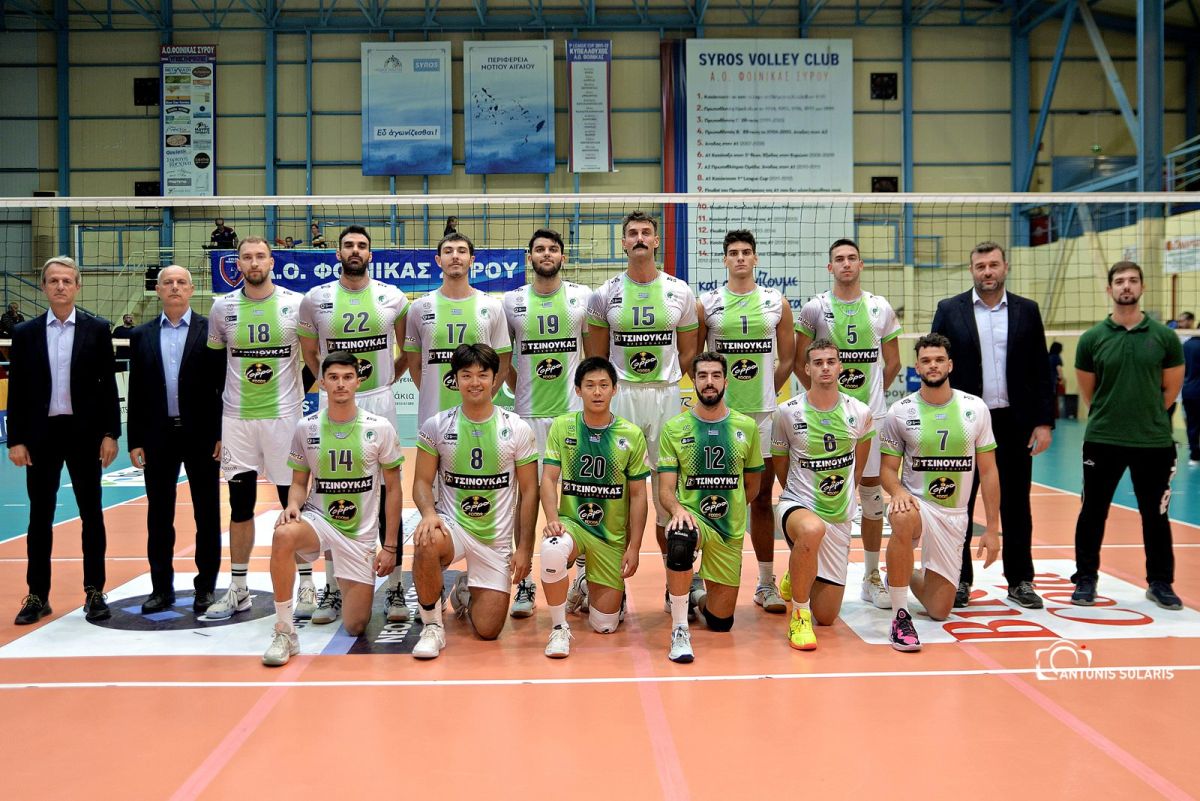 Α.Ο. ΦΟΙΝΙΚΑΣ ΣΥΡΟΥ (Νίκος Ζαλμάς): Βαϊόπουλος 10 (6/11 επ., 1 άσσος, 3 μπλοκ), Καπετανίδης 18 (15/31 επ., 2 άσσοι, 1 μπλοκ, 44% υπ. – 15% άριστες), Ρικάρντο 16 (13/24 επ., 1 άσσος, 2 μπλοκ, 40% υπ. – 23% άριστες), Ασπιώτης 20 (18/31 επ., 1 άσσος, 1 μπλοκ), Σκρούντερς 4 (2/2 επ., 2 μπλοκ), Μορέιρα 11 (7/11 επ., 3 άσσοι, 1 μπλοκ) / Μπουράκης (λ, 55% υπ. – 24% άριστες), Αρόνγκα 1 (1/2 επ.), Ρουσόπουλος.