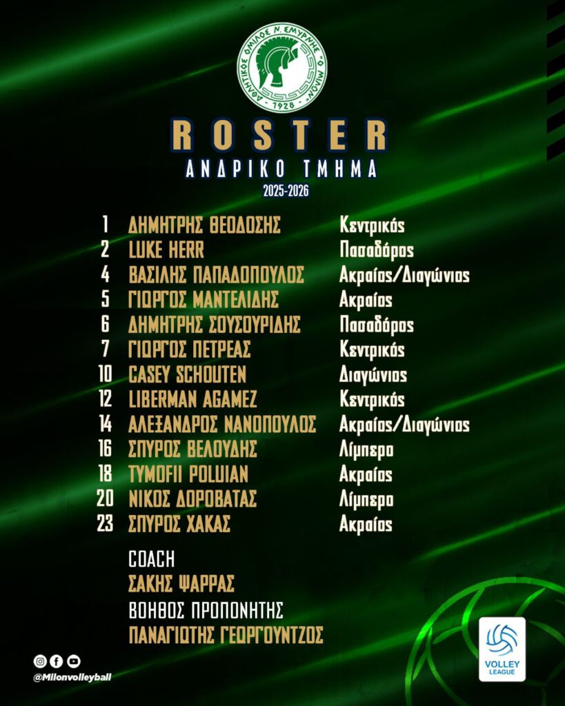 | 2 | Herr Luke | Canada | 18/07/1994 | 1.94 | Πασαδόρος | Α.Ο.Ν.Σ Μίλων |