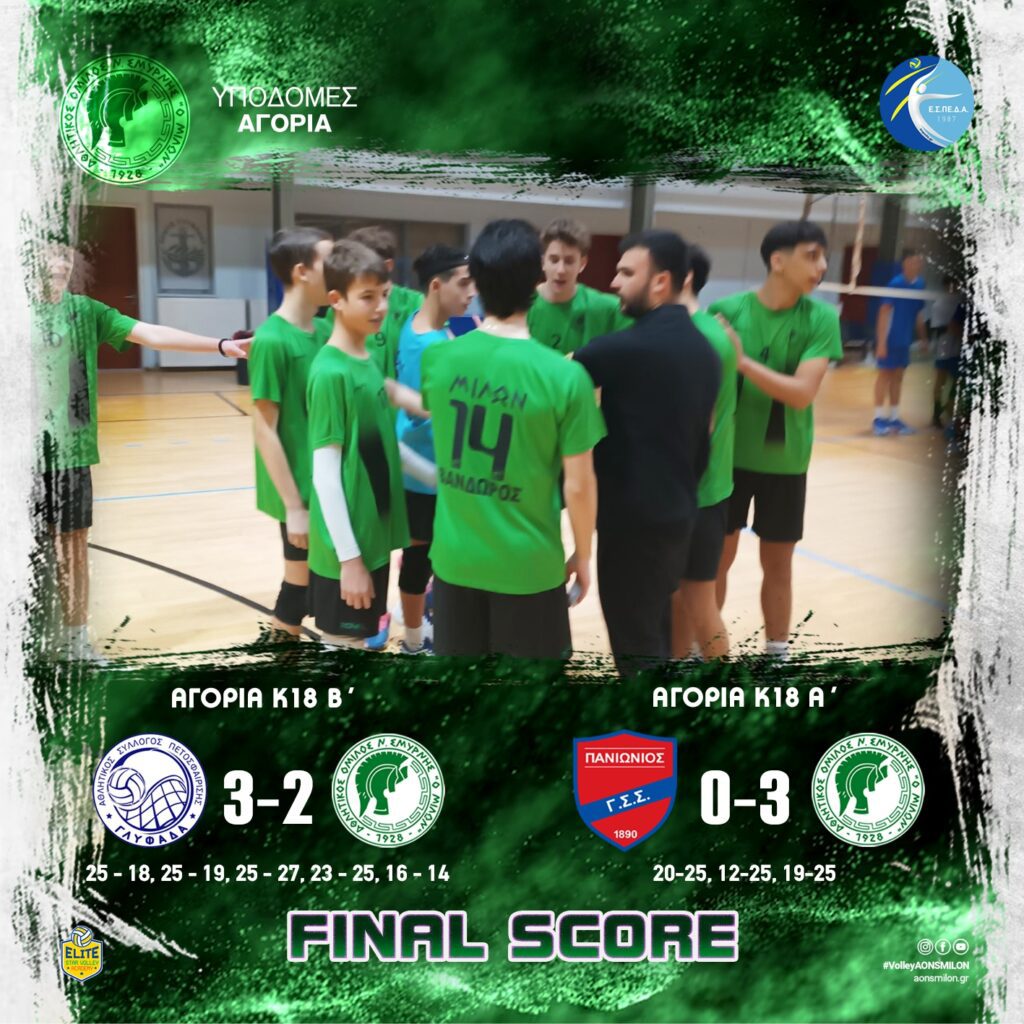 🏐 Αποτελέσματα αγώνων υποδομών – Αγοριών