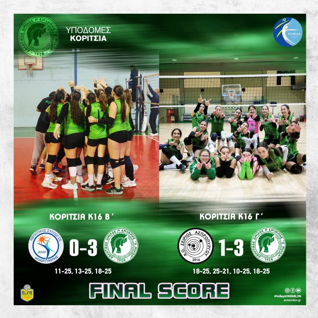 🏐 Αποτελέσματα αγώνων υποδομών – Κορίτσια Κ16