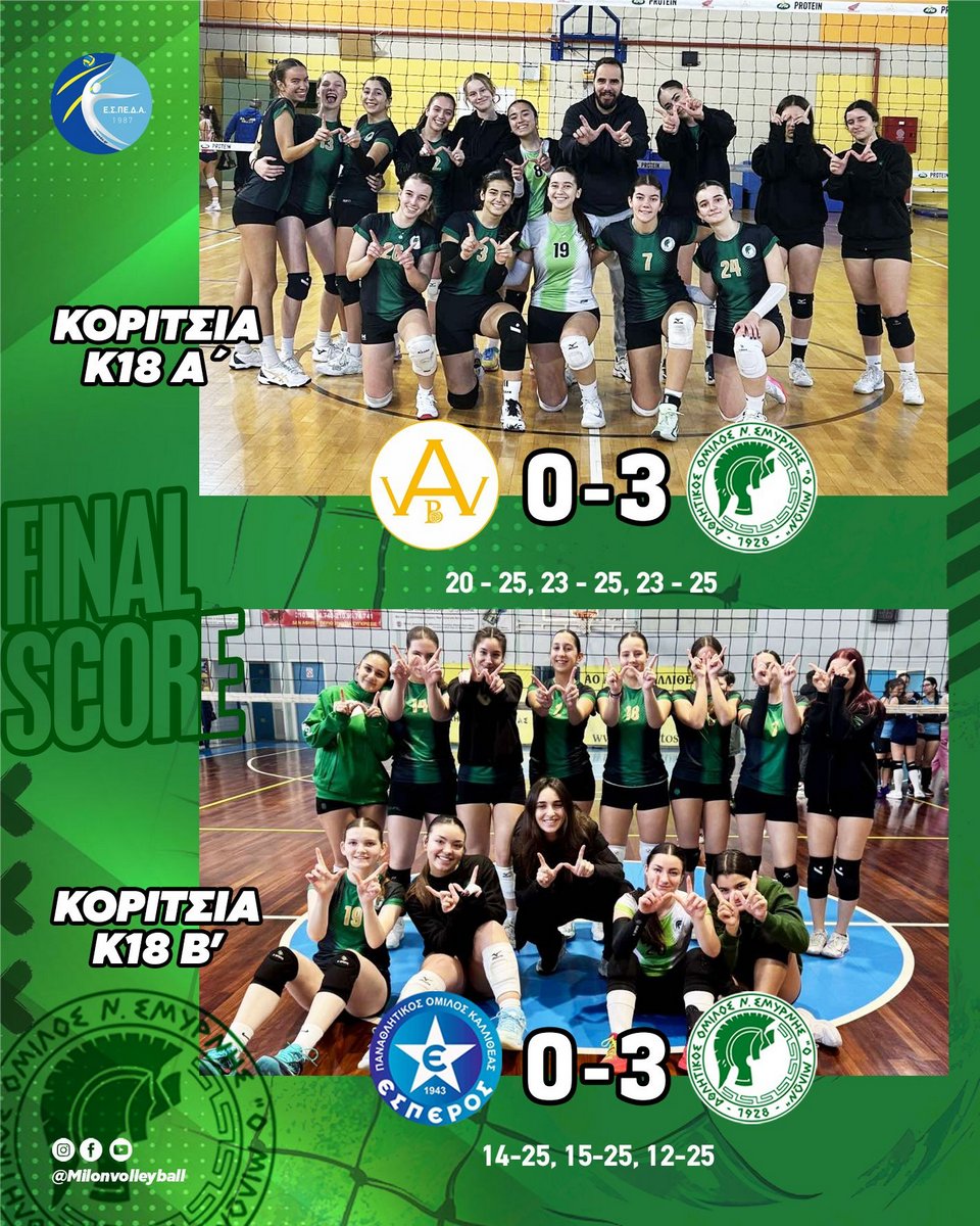 ΑΠΟΤΕΛΕΣΜΑΤΑ ΥΠΟΔΟΜΩΝ / ΚΟΡΙΤΣΙΑ Κ18 – ΚΟΡΙΤΣΙΑ Κ16
