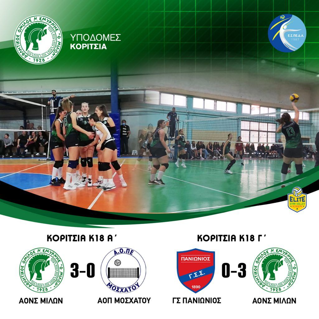 🏐 Νίκη για τις Κ18 Α΄ ΕΣΠΕΔΑ του Μίλωνα μέσα στο Δημήτρης Ράπτης επί της δυναμικής ομάδας του ΑΟΠ ΜΟΣΧΑΤΟΥ με 3-0. (25-12, 25-13, 25-16)