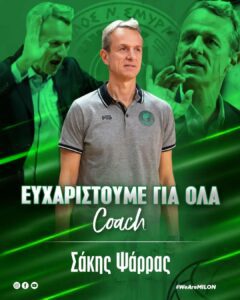 Ο ΑΟΝΣ Μίλων ευχαριστεί θερμά τον Σάκη Ψάρρα για την προσφορά του και του εύχεται κάθε επιτυχία στη συνέχεια της προπονητικής του πορείας.