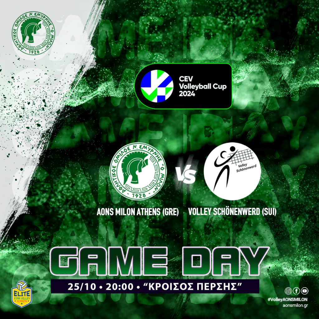 Όλοι οι φίλοι του Μίλωνα δίνουν ραντεβού σήμερα στο μεγάλο Ευρωπαϊκό αγώνα βόλει της αντρικής ομάδας στο Γυμναστήριο “Κροίσος Πέρσης”.