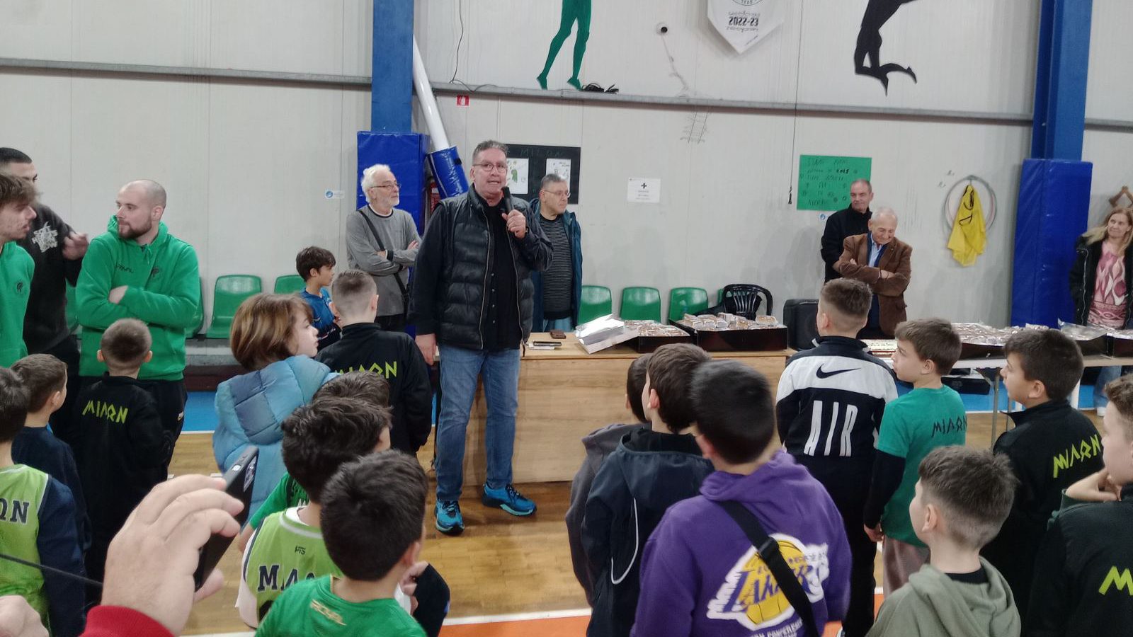Τα παιδιά των τμημάτων μπάσκετ είχαν έτσι την ευκαιρία να παρακολουθήσουν μετά την εκδήλωση το σημαντικό αυτό παιχνίδι και να ενισχύσουν το ανδρικό τμήμα με τη φωνή και τον παλμό τους. Η παρουσία των τμημάτων υποδομής στους εντός έδρας αγώνες της ομάδας μας ενισχύει το δέσιμο των παιδιών με τον Σύλλογο και τα κάνει να αισθάνονται μέλη της μεγάλης οικογένειας του Μίλωνα.