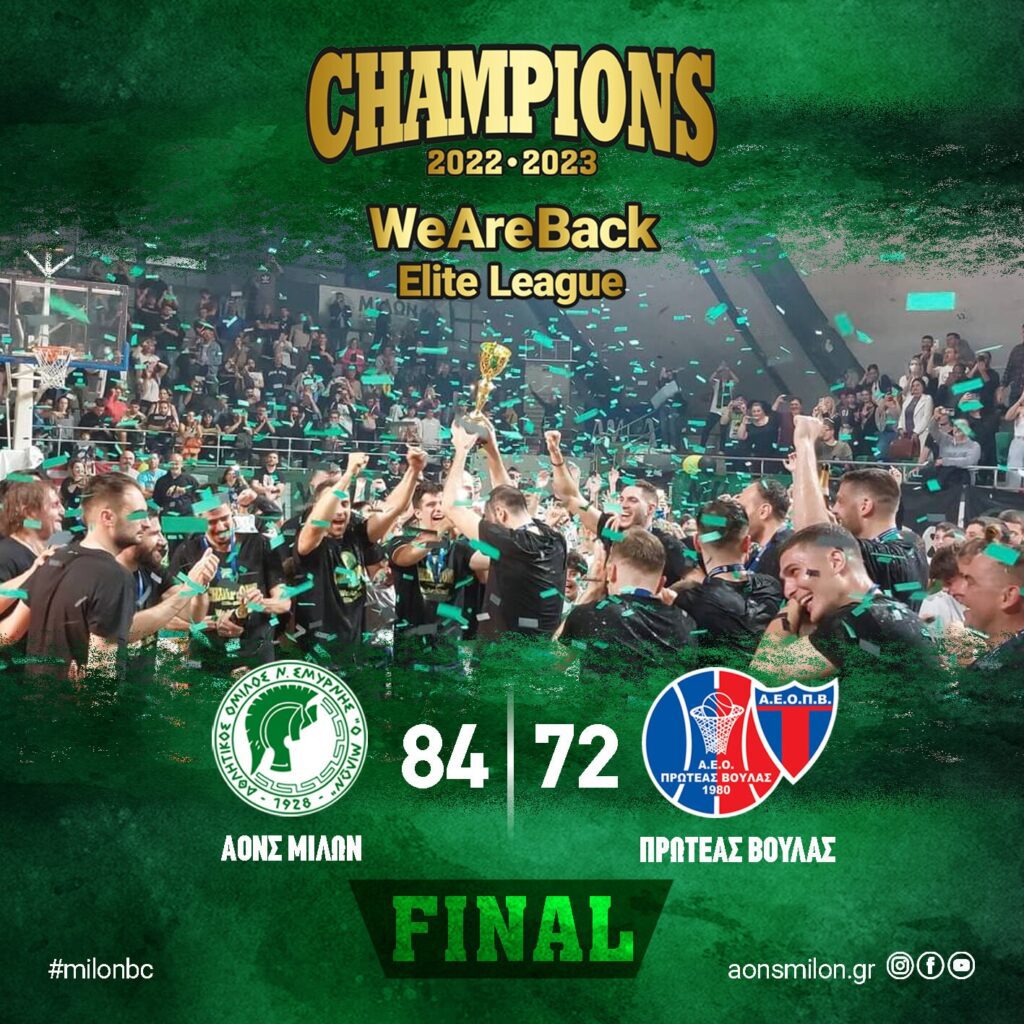 Μια μαγική βραδιά έζησαν το Σάββατο όλοι οι φίλοι της ομάδας μας στο «Κροίσος Πέρσης» καθώς έπειτα από 16 χρόνια ο Μίλωνας επιστρέφει στα σαλόνια της Elite League! Η ομάδα του Νίκου Καραγιάννη επικράτησε για 2η φορά του Πρωτέα Βούλας με 84-72, πανηγυρίζοντας την άνοδο του στην Elite League.