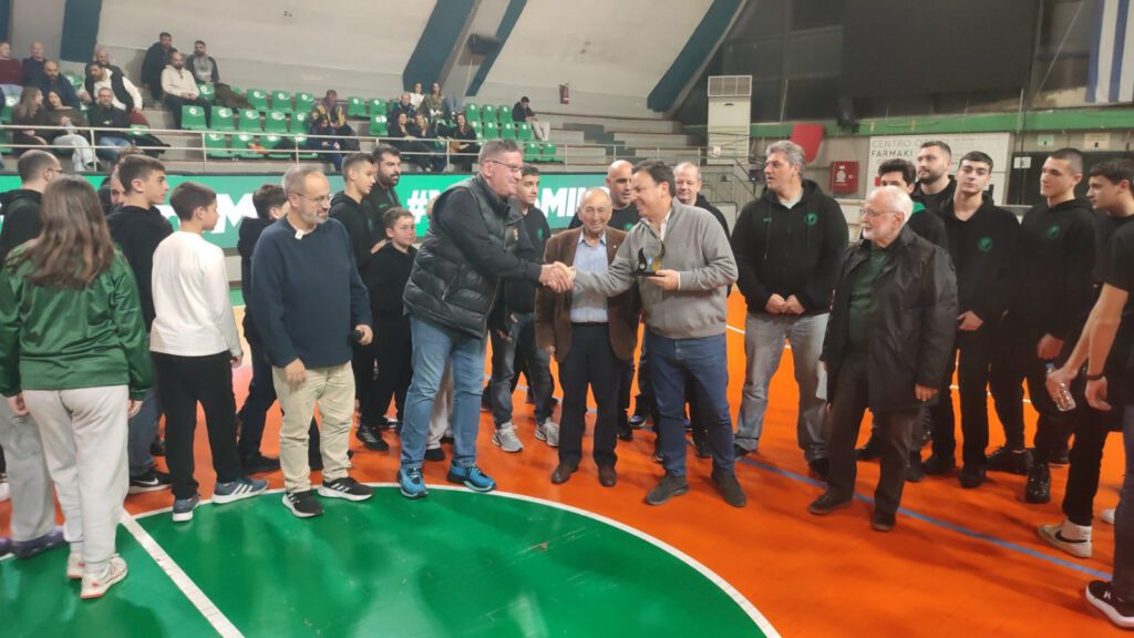 Ο Σύλλογος μας στο ημίχρονο του αγώνα μπάσκετ Μίλωνας – Δάφνη για το πρωτάθλημα της National League 1, το Σάββατο 31 Ιανουάριου 2026, βράβευσε τον ομοσπονδιακό προπονητή της Εθνικής Ομάδας Πόλο Ανδρών, Θοδωρή Βλάχο.