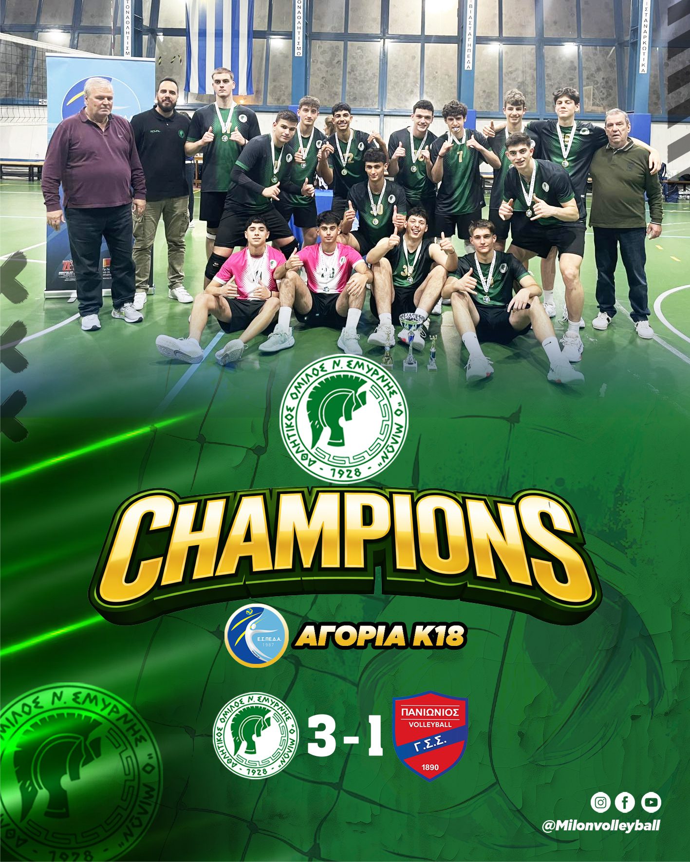 Μεγάλη επιτυχία για τον Α.Ο.Ν.Σ. Μίλων, που κατέκτησε το πρωτάθλημα ΕΣΠΕΔΑ Κ18, επικρατώντας στον τελικό του Πανιώνιου με 3-1 σετ!