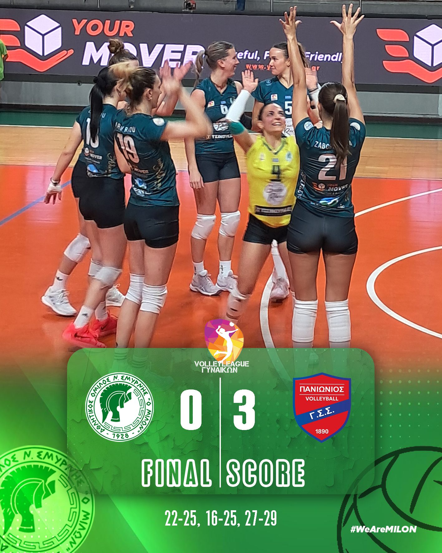 Ήττα για τη γυναικεία ομάδα του Α.Ο.Ν.Σ. Μίλων από τον Πανιώνιο Betsson με 0-3 σετ, στο πλαίσιο της 17ης αγωνιστικής της Volley League Γυναικών, σε έναν αγώνα όπου οι λεπτομέρειες –ιδιαίτερα στο τρίτο σετ– έκριναν την εξέλιξη.