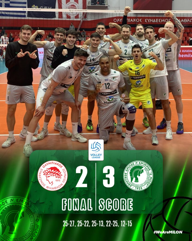 Η ανδρική ομάδα βόλεϊ του Α.Ο.Ν.Σ. Μίλων πέτυχε μια τεράστια εκτός έδρας νίκη απέναντι στον Ολυμπιακό, επικρατώντας με 3–2 σετ σε ένα…