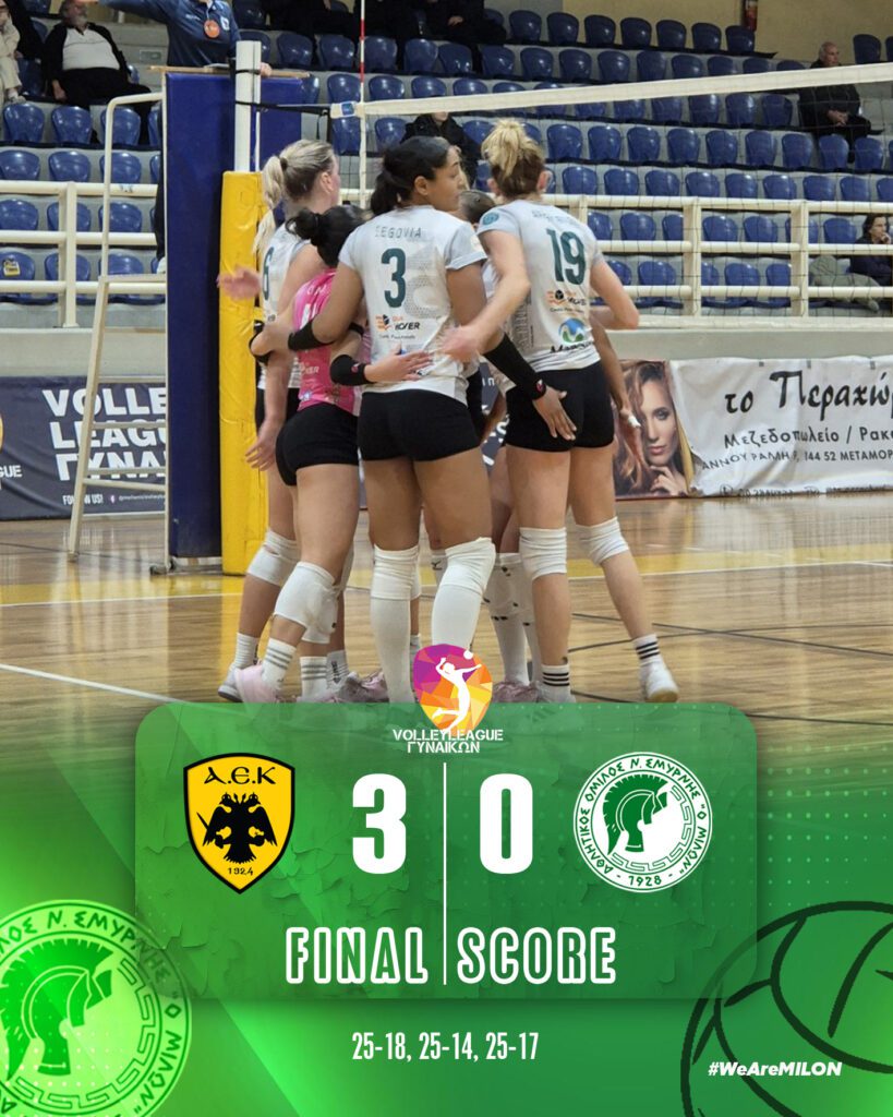 Η γυναικεία ομάδα βόλεϊ του Α.Ο.Ν.Σ. Μίλων γνώρισε την ήττα με 3–0 σετ από την ΑΕΚ, σε εκτός έδρας αναμέτρηση για τη…