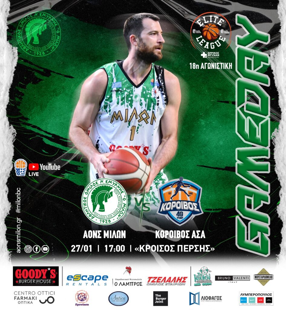 🏀18η αγωνιστική Elite League ⏰ Σάββατο 27/1, 17:00 🆚 Κόροιβος Αμαλιάδας✅Όλοι στο γήπεδό μας, δίπλα στην ομάδα μας, για να την στηρίξουμε…