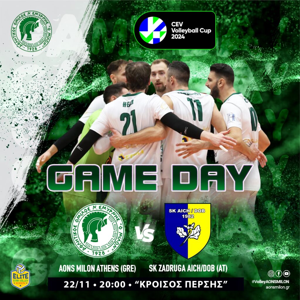 AONS Milon NEA Smyrni ATHENS (GRE) SK Zadruga AICH/DOB (AT) 22/11 • 20:00 • “KROISOS PERSHS” #milonvolleyball#aonsmilon