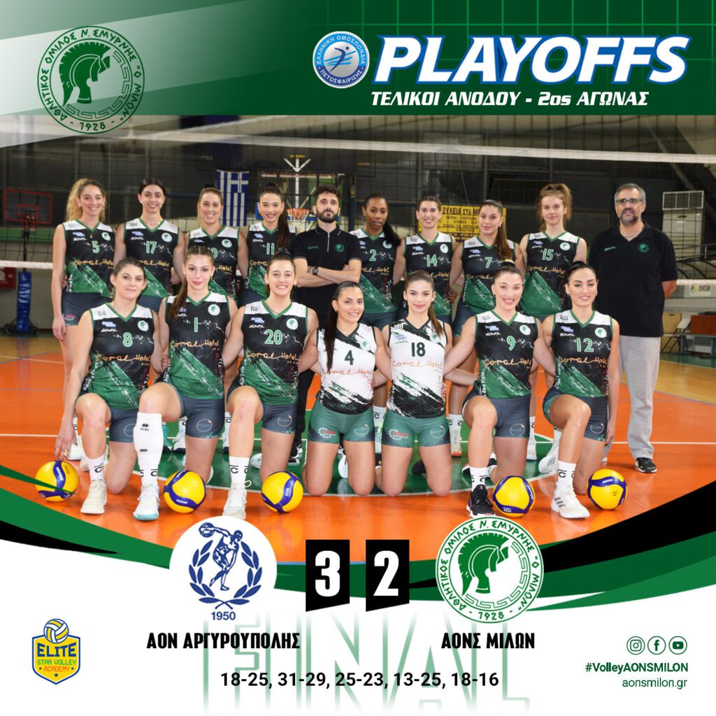 ΗΤΤΑ ΓΙΑ ΤΗ ΓΥΝΑΙΚΕΙΑ ΟΜΑΔΑ ΒΟΛΕΙ ΤΟΥ ΜΙΛΩΝΑ ΣΤΗΝ ΑΡΓΥΡΟΥΠΟΛΗ ! ΑΟΝ ΑΡΓΥΡΟΥΠΟΛΗΣ – ΑΟΝΣ ΜΙΛΩΝ: 3-2 PLAY OFFS ΑΝΟΔΟΥ ΠΡΩΤΑΘΛΗΜΑ Α2 VOLLEY ΓΥΝΑΙΚΩΝ