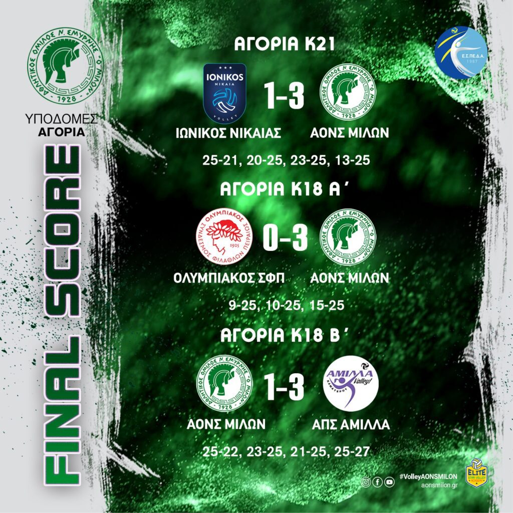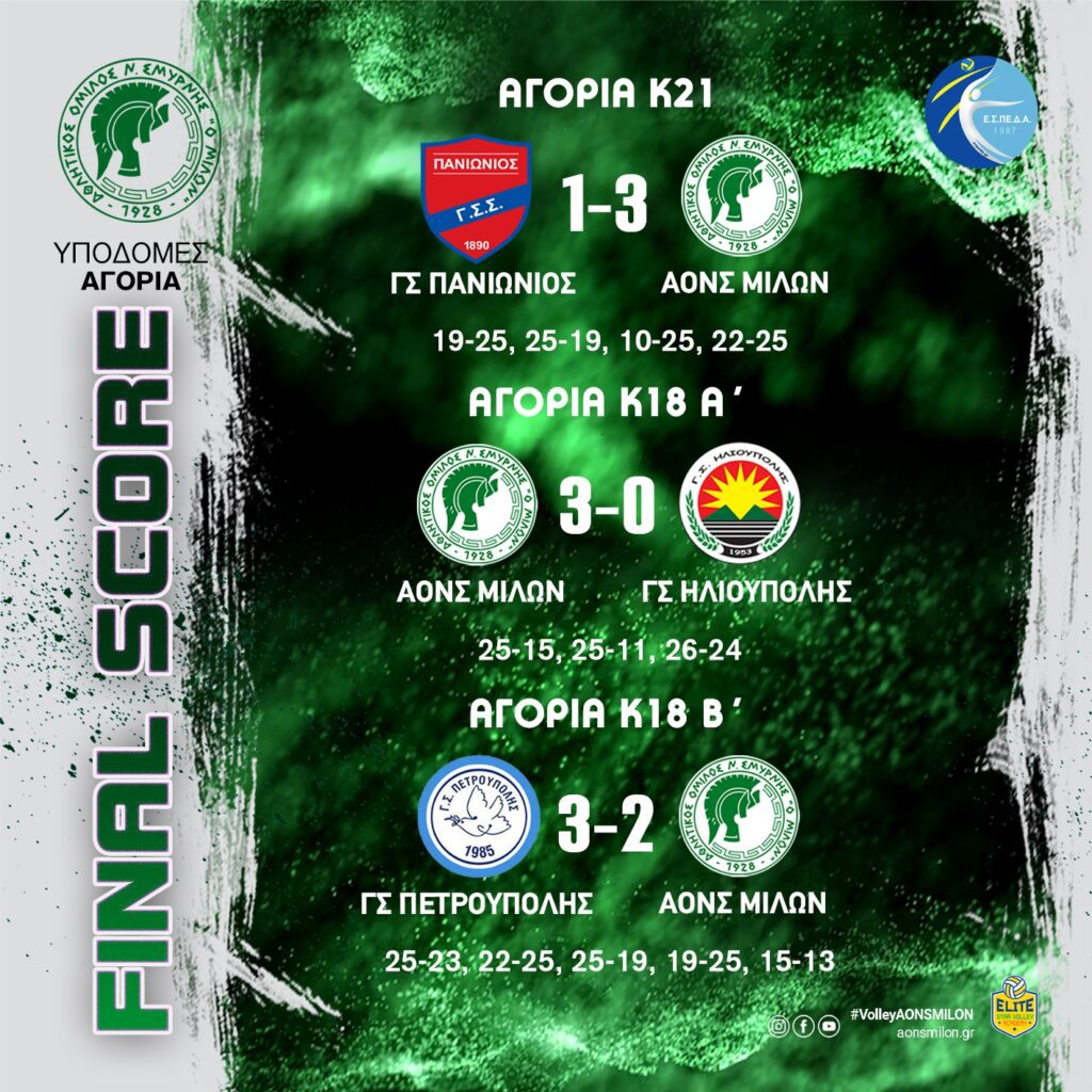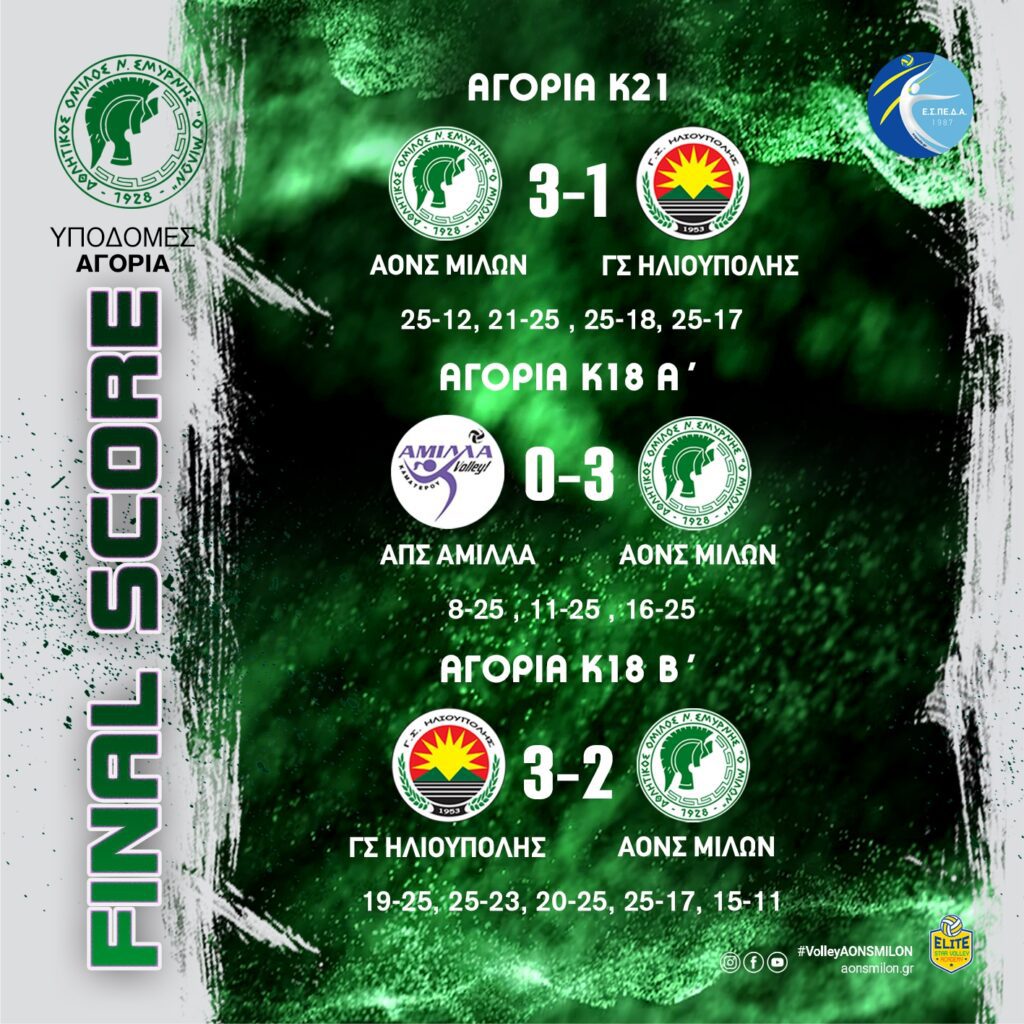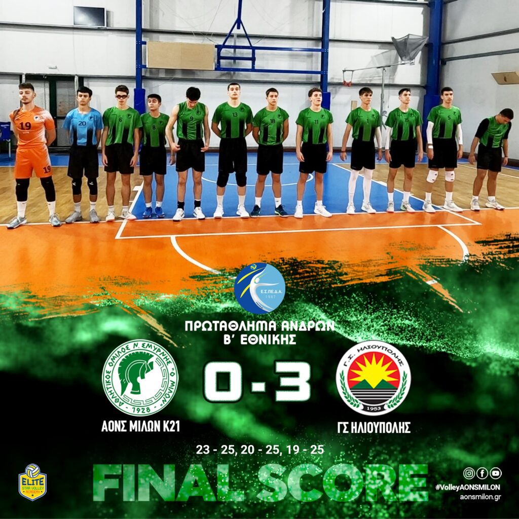 ΑΟΝΣ ΜΙΛΩΝ (K21) – ΓΣ ΗΛΙΟΥΠΟΛΗΣ 0-3 23 – 25, 20 – 25, 19 – 25 #milonvolleyball#aonsmilon