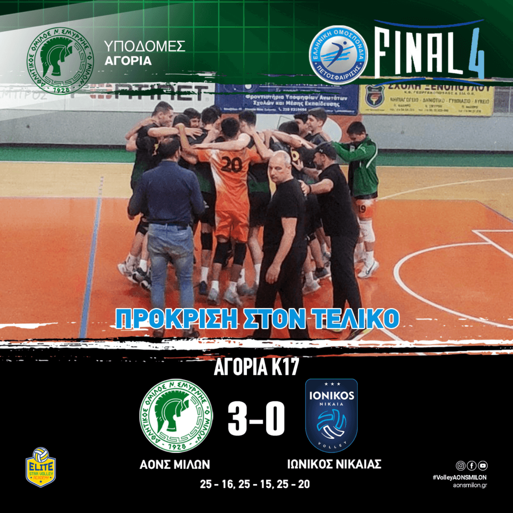 Η ομάδα βόλει των Παμπαίδων (Κ17) του Μίλωνα, επικράτησε με 3-0 του Ιωνικού Νίκαιας στον ημιτελικό και πιστή στο ραντεβού των τελικών…