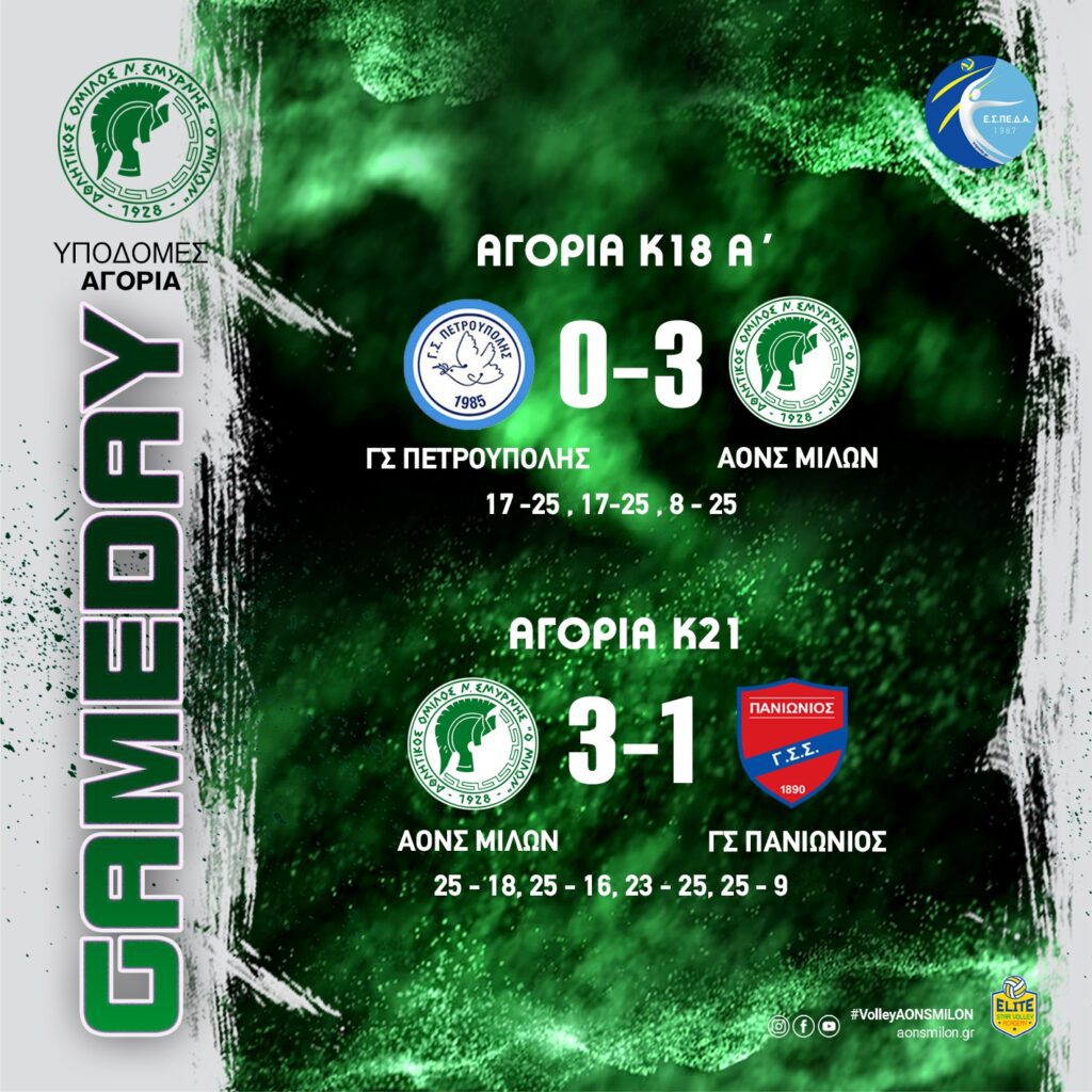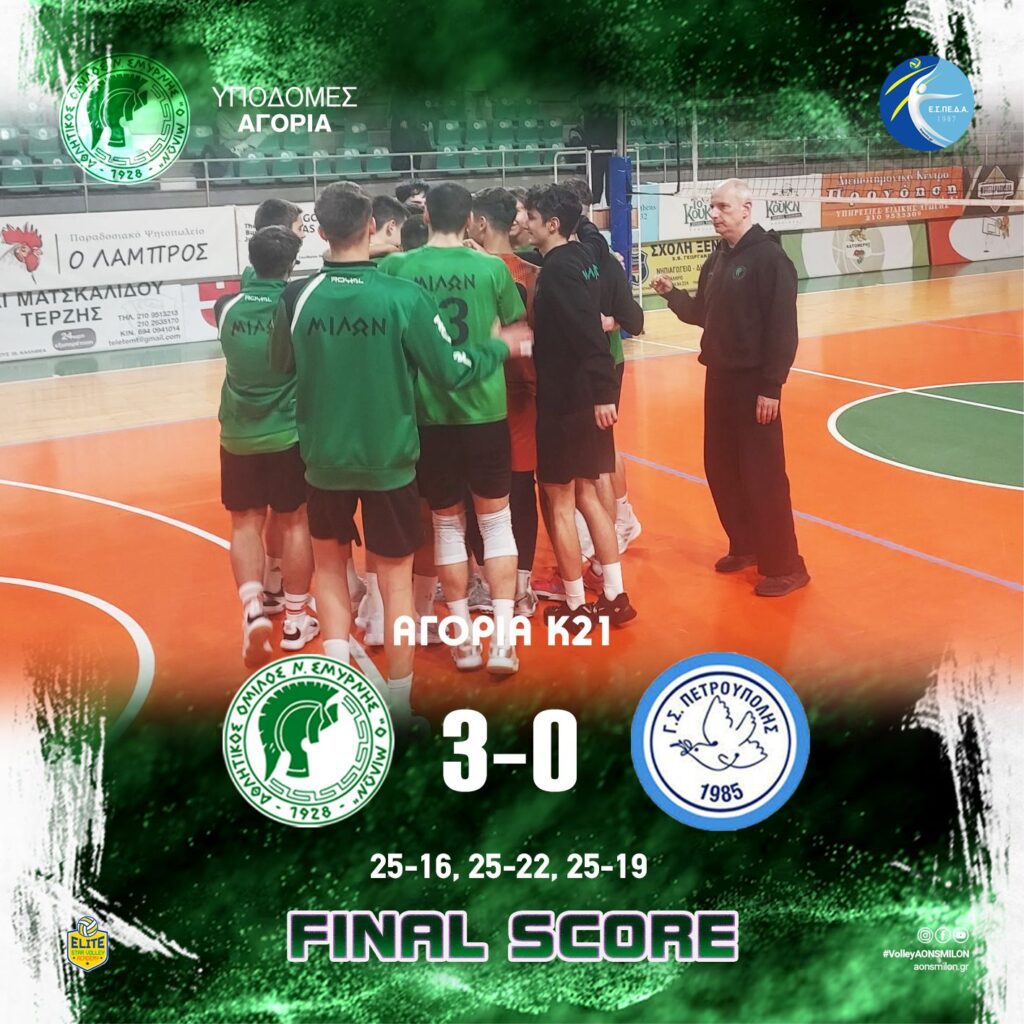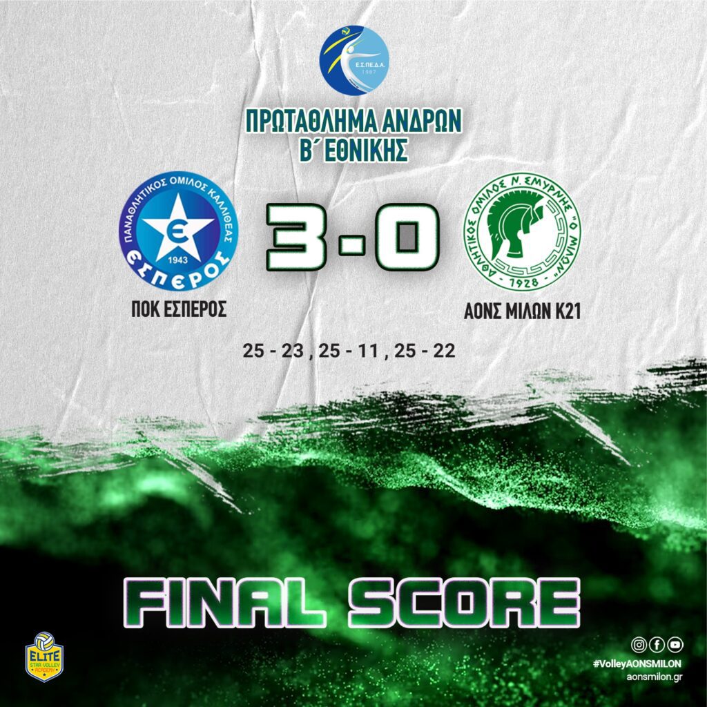 ΠΟΚ ΕΣΠΕΡΟΣ – ΑΟΝΣ ΜΙΛΩΝ (K21) 3-0 25 – 23 , 25-11 , 25 – 22