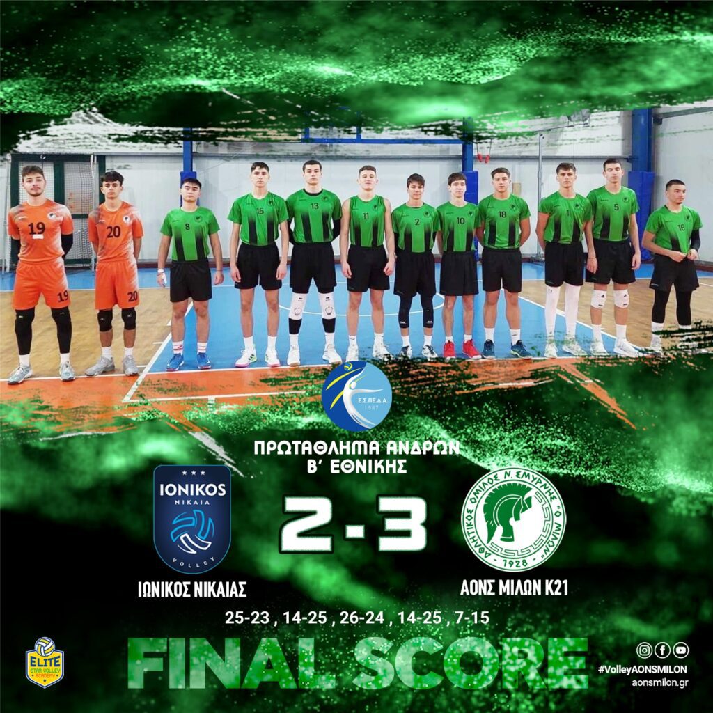 ΙΩΝΙΚΟΣ ΝΙΚΑΙΑΣ – ΑΟΝΣ ΜΙΛΩΝ 2-3 25-23, 14-25, 26-24, 14-25, 7-15