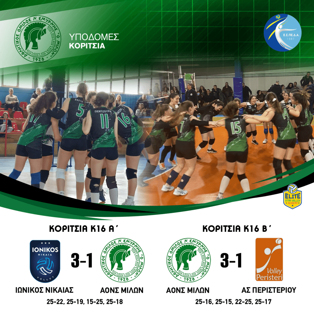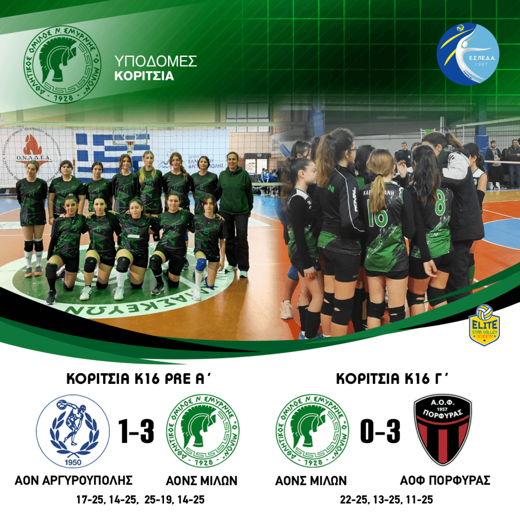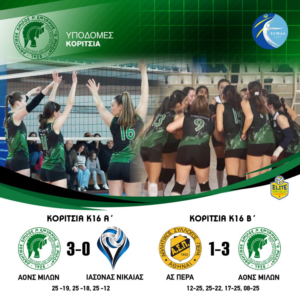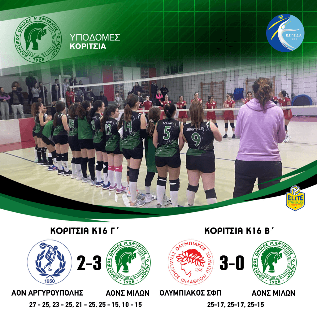 ΑΠΟΤΕΛΕΣΜΑΤΑ ΥΠΟΔΟΜΕΣ ΚΟΡΙΤΣΙΩΝ #milonvolleyball#milonvolleyballacademy#aonsmilon