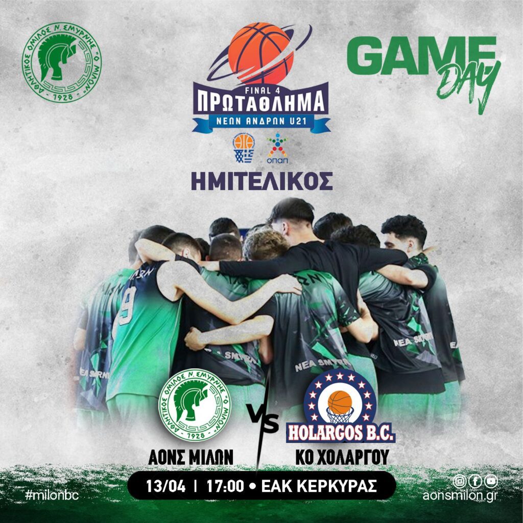 U21 – ΗΜΙΤΕΛΙΚΟΣ FINAL4 ΠΑΝΕΛΛΗΝΙΟΥ ΠΡΩΤΑΘΛΗΜΑΤΟΣ ΑΟΝΣ ΜΙΛΩΝ ΚΟ ΧΟΛΑΡΓΟΥ 13/04 17:00 ΕΑΚ ΚΕΡΚΥΡΑΣ