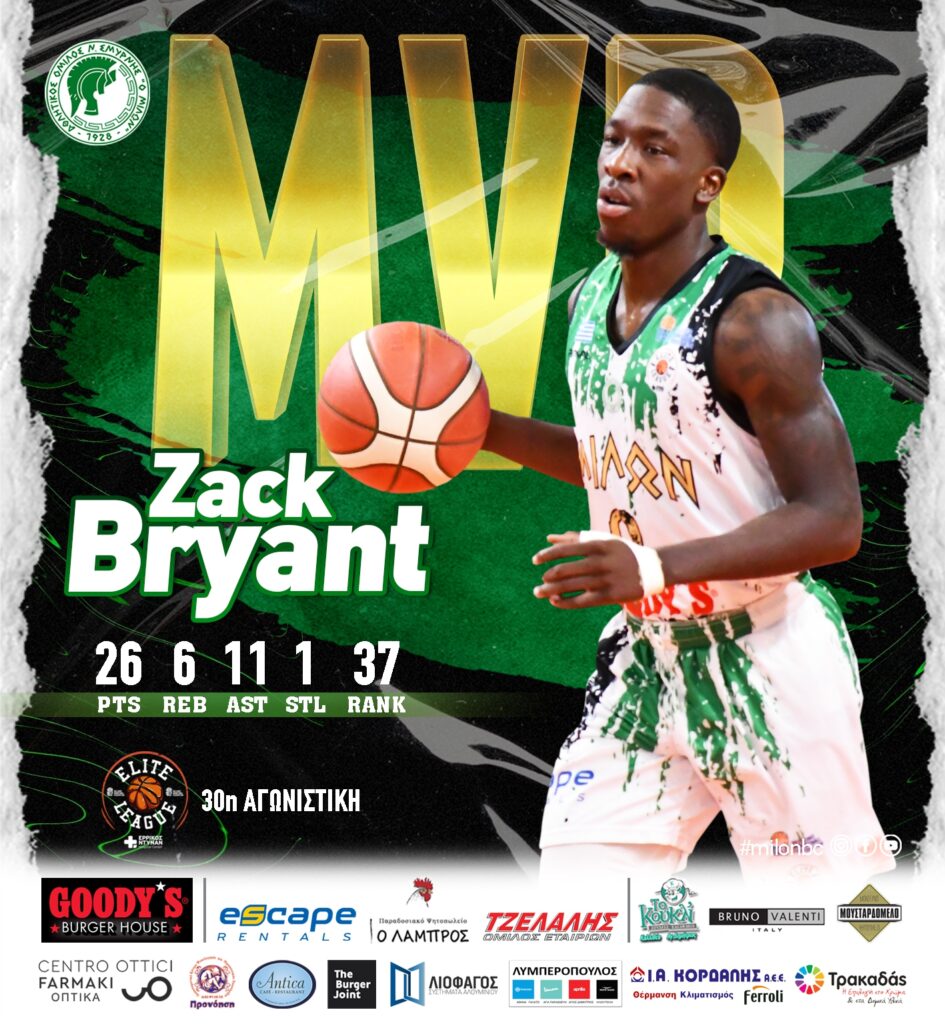 Ο Ζακ Μπράιαντ ήταν ο πολυτιμότερος παίκτης στην 30η αγωνιστική της Elite League Ερρίκος Ντυνάν. Είναι η τέταρτη φορά τη φετινή περίοδο…