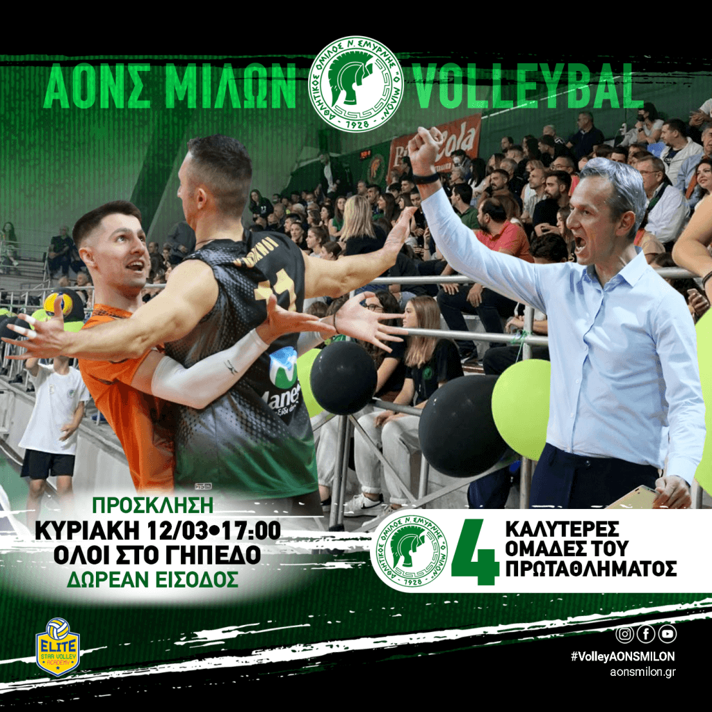 Την Κυριακή 12 Μαρτίου (17:00) ο εντός έδρας αγώνας της αντρικής ομάδας βόλει του Μίλωνα – στην τελευταία αγωνιστική της κανονικής διάρκειας…