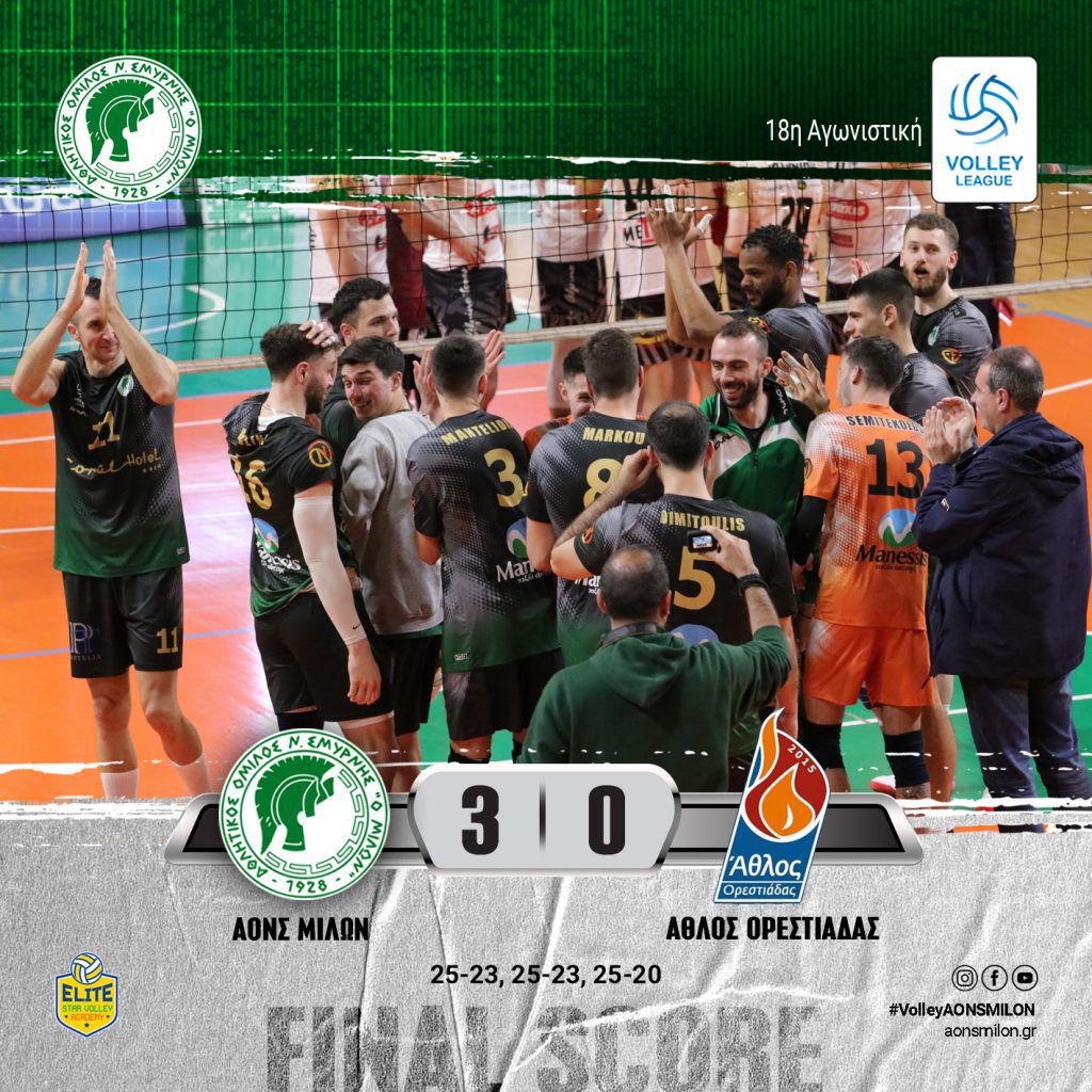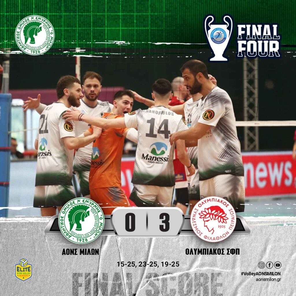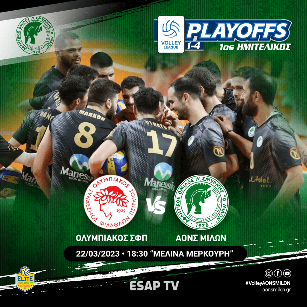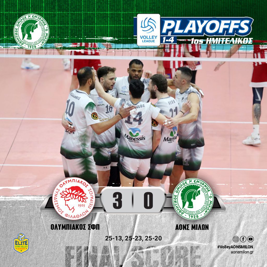 ΗΤΤΑ ΓΙΑ ΤΗΝ ΑΝΤΡΙΚΗ ΟΜΑΔΑ ΒΟΛΕΙ ΤΟΥ ΜΙΛΩΝΑ ΣΤΟΝ ΠΡΩΤΟ ΗΜΙΤΕΛΙΚΟ ΤΩΝ PLAY OFFS ΜΕ ΤΟΝ ΟΛΥΜΠΙΑΚΟ ΟΛΥΜΠΙΑΚΟΣ – ΜΙΛΩΝ: 3-0 ΠΡΩΤΑΘΛΗΜΑ VOLLEY LEAGUE ΑΝΔΡΩΝ