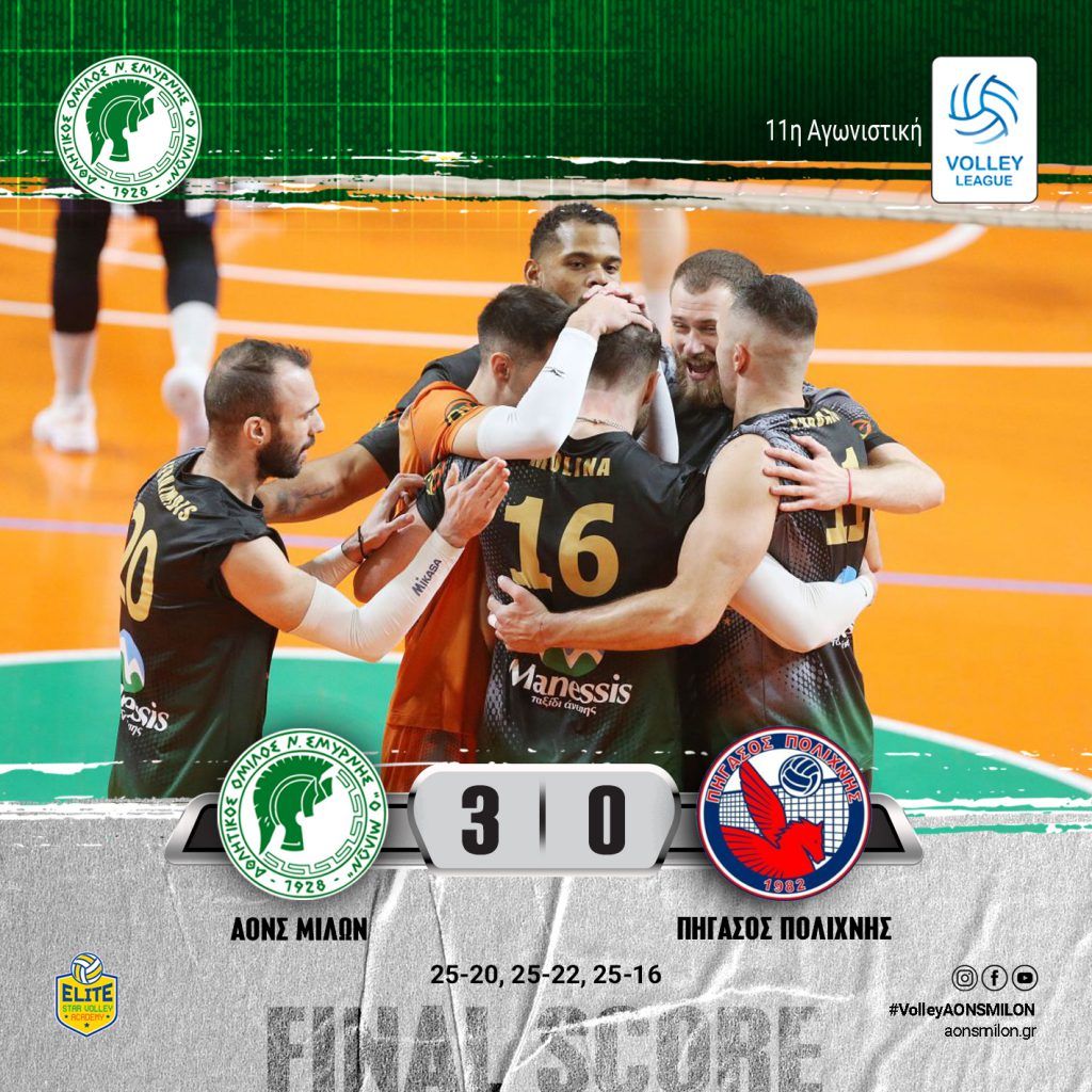 ΜΕΓΑΛΗ ΝΙΚΗ ΝΙΚΗ ΓΙΑ ΤΗΝ ΑΝΤΡΙΚΗ ΟΜΑΔΑ ΒΟΛΕΙ ΤΟΥ ΜΙΛΩΝΑ ΚΑΙ ΕΠΙΣΤΡΟΦΗ ΣΤΗΝ ΠΡΩΤΗ ΤΕΤΡΑΔΑ ΤΟΥ ΠΡΩΤΑΘΛΗΜΑΤΟΣ ΜΙΛΩΝ – ΠΗΓΑΣΟΣ ΠΟΛΙΧΝΗΣ: 3-0 ΠΡΩΤΑΘΛΗΜΑ VOLLEY LEAGUE ΑΝΔΡΩΝ