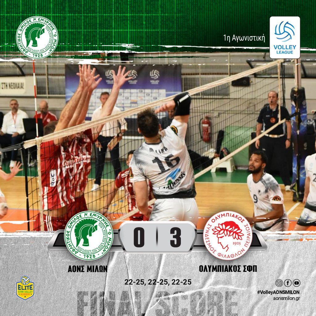 ΜΙΛΩΝ – ΟΛΥΜΠΙΑΚΟΣ: 0-3 ΠΡΩΤΑΘΛΗΜΑ VOLLEY LEAGUE ΑΝΔΡΩΝ