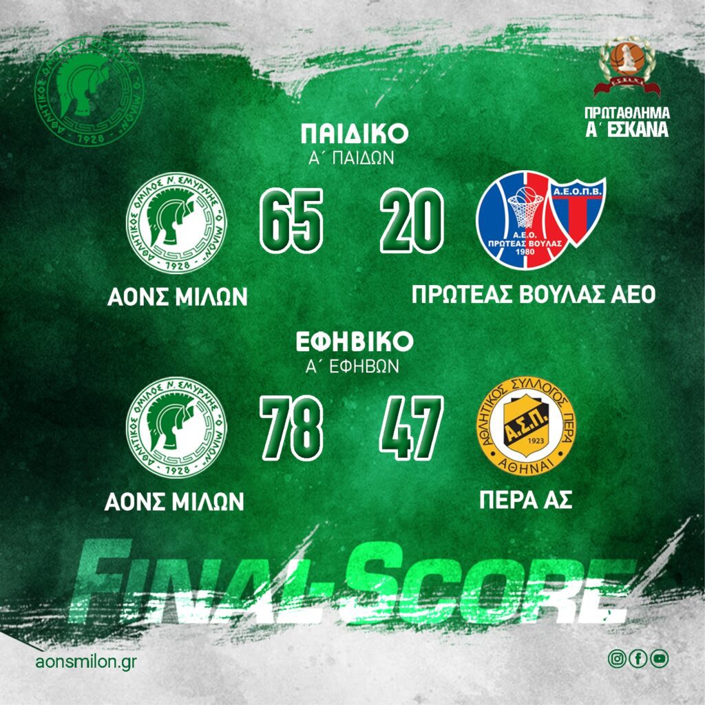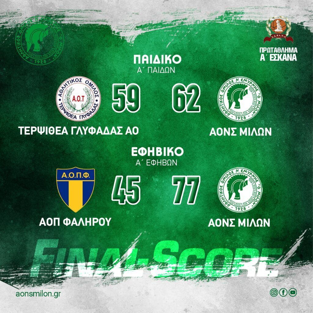 Παιδικό ΑΟΝΣ ΜΙΛΩΝ ΟΛΥΜΠΙΑΚΟΣ ΣΦΠ 74-60 Εφηβικό ΑΟΝΣ ΜΙΛΩΝ ΟΛΥΜΠΙΑΚΟΣ ΣΦΠ 75-87