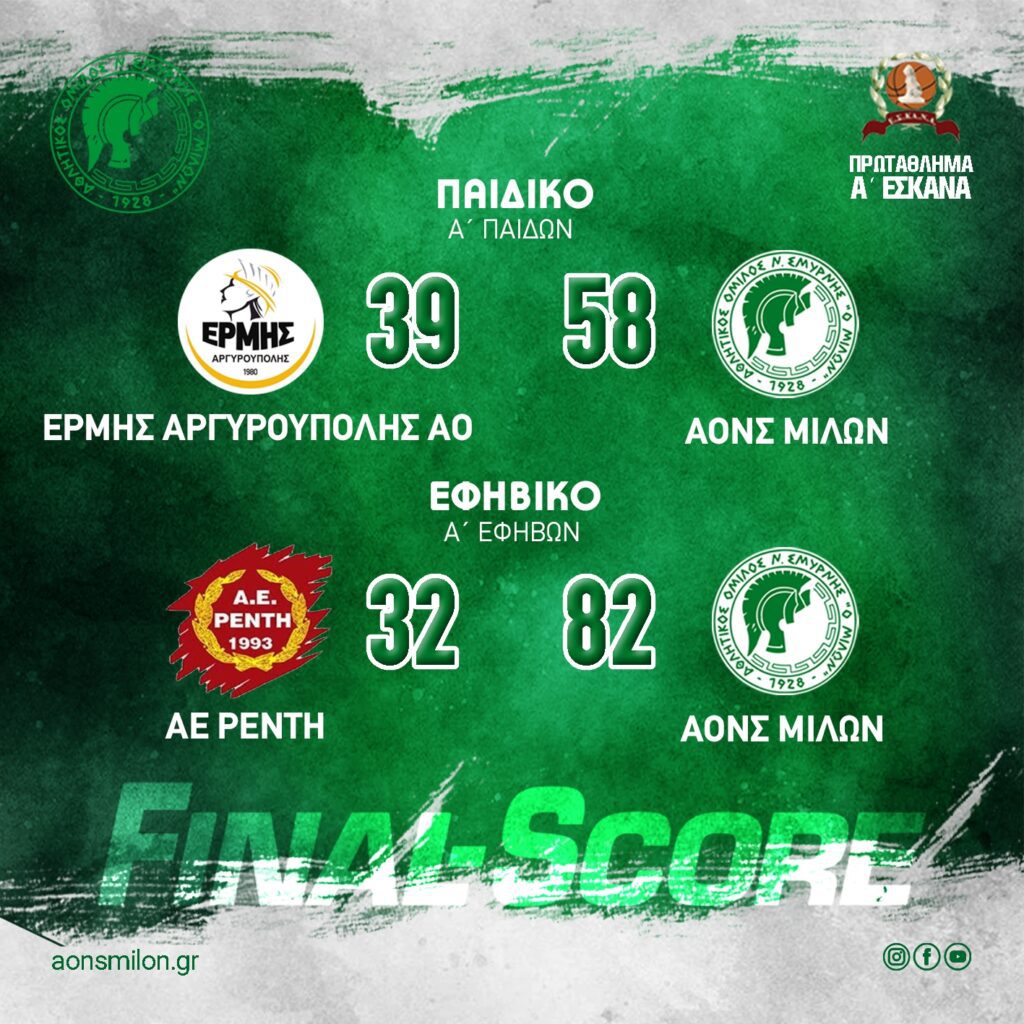 🏀 ΠαιδικόΕΡΜΗΣ ΑΡΓΥΡΟΥΠΟΛΗΣ ΑΟ 🆚️ ΑΟΝΣ ΜΙΛΩΝ 39-58🏀 ΕφηβικόΑΕ ΡΕΝΤΗ 🆚️ ΑΟΝΣ ΜΙΛΩΝ 32-82