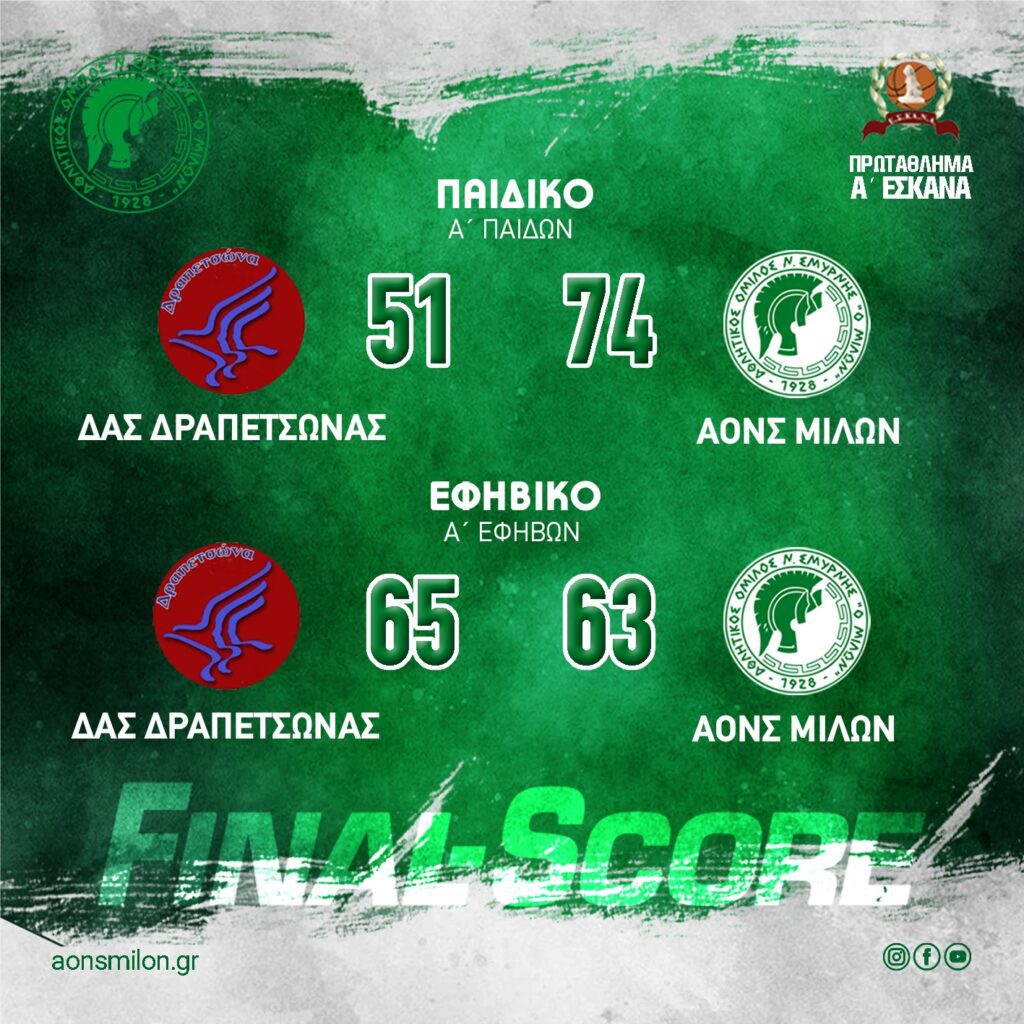 🏀 ΠαιδικόΔΑΣ ΔΡΑΠΕΤΣΩΝΑΣ 🆚️ ΑΟΝΣ ΜΙΛΩΝ 51-74🏀 ΕφηβικόΔΑΣ ΔΡΑΠΕΤΣΩΝΑΣ 🆚️ ΑΟΝΣ ΜΙΛΩΝ 65-63🟢⚫️ #aonsmilon #milonacademy #milonbc