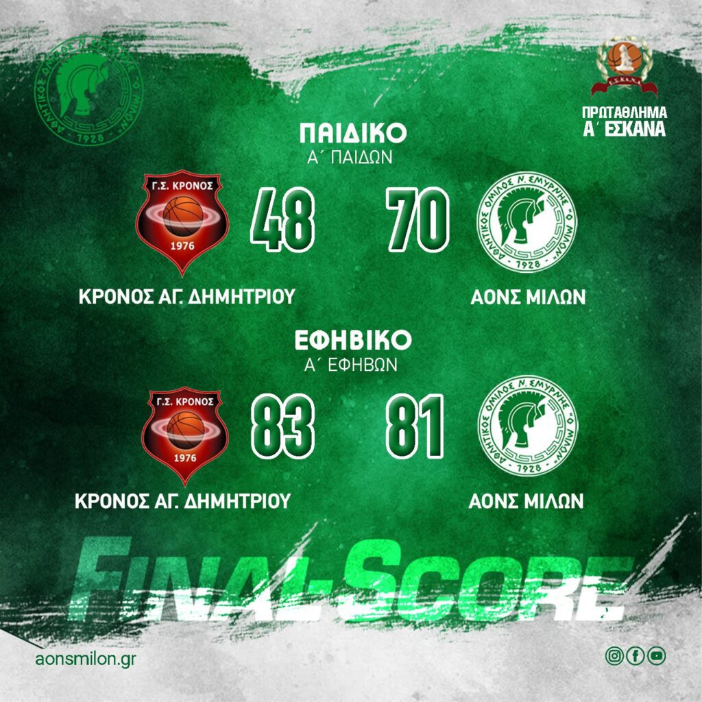 Παιδικό ΚΡΟΝΟΣ ΑΓ. ΔΗΜΗΤΡΙΟΥ ΑΟΝΣ ΜΙΛΩΝ 48-70 Εφηβικό ΚΡΟΝΟΣ ΑΓ. ΔΗΜΗΤΡΙΟΥ ΑΟΝΣ ΜΙΛΩΝ 83-81 (Β΄ Παράταση)