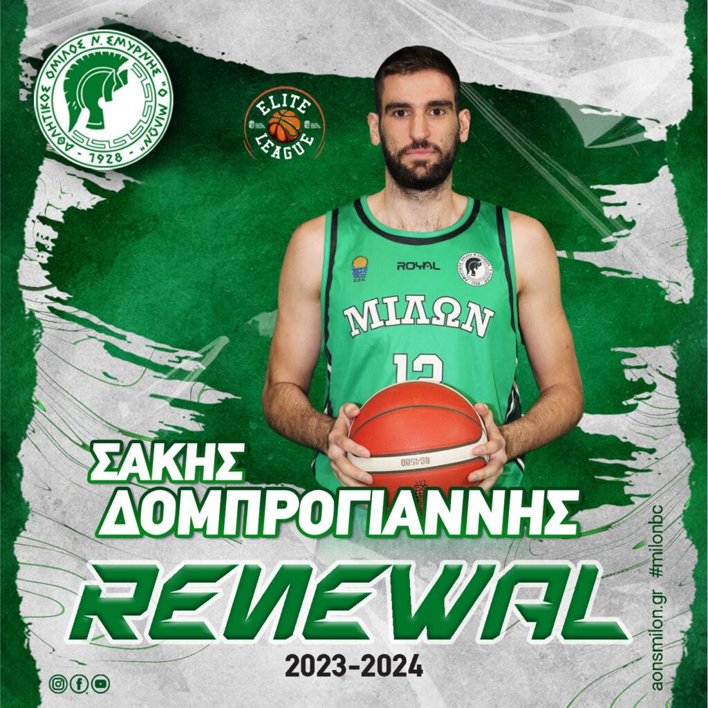 Με τη φανέλα του Α.Ο.Ν.Σ. Μίλων θα συνεχίσει να αγωνίζεται και τη νέα σεζόν ο Σάκης Δομπρογιάννης (γενν. 1999, 2.04μ.). Ο 24χρονος…