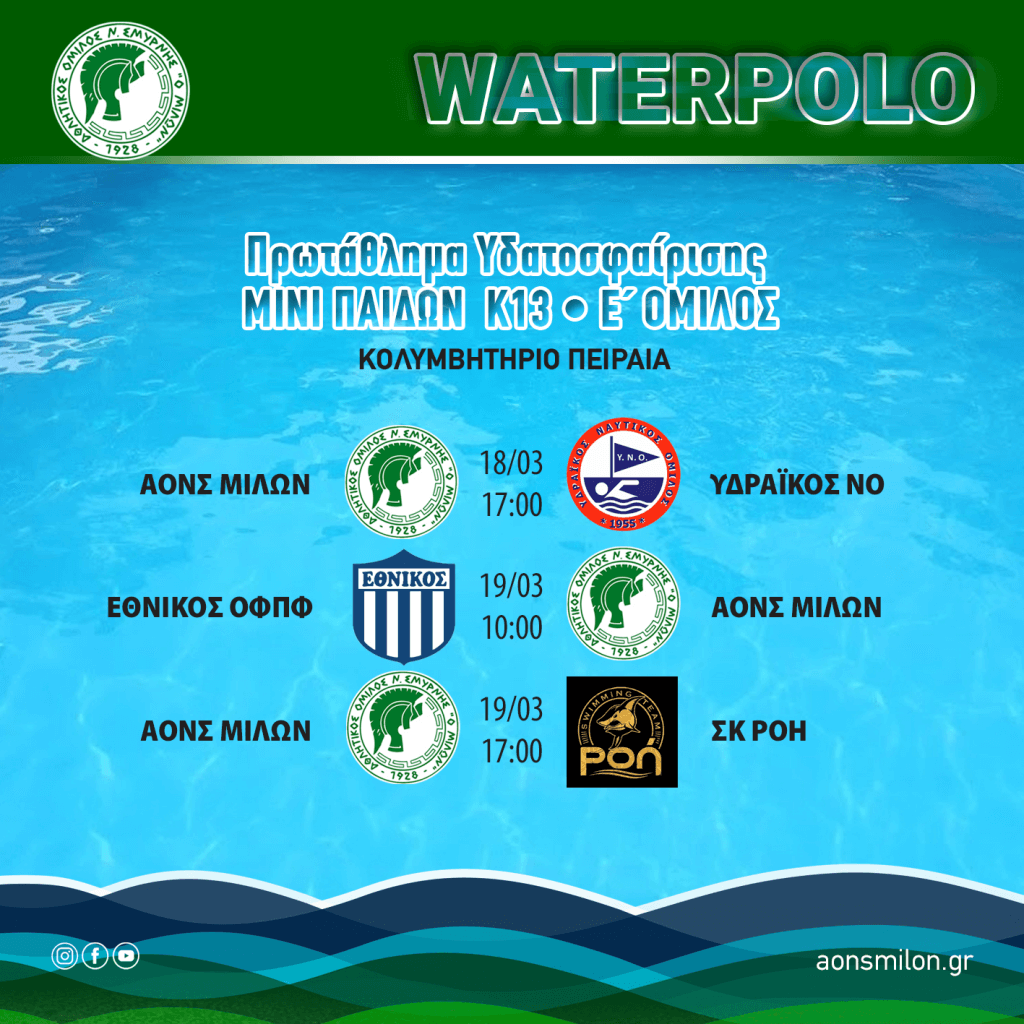 Το Σαββατοκύριακο 18-19/03/2023 θα διεξαχθούν οι αγώνες της Α ´ Φάσης του Πρωταθλήματος Υδατοσφαίρισης ΜΙΝΙ ΠΑΙΔΩΝ Κ13 . Η ομάδα μας κληρώθηκε…